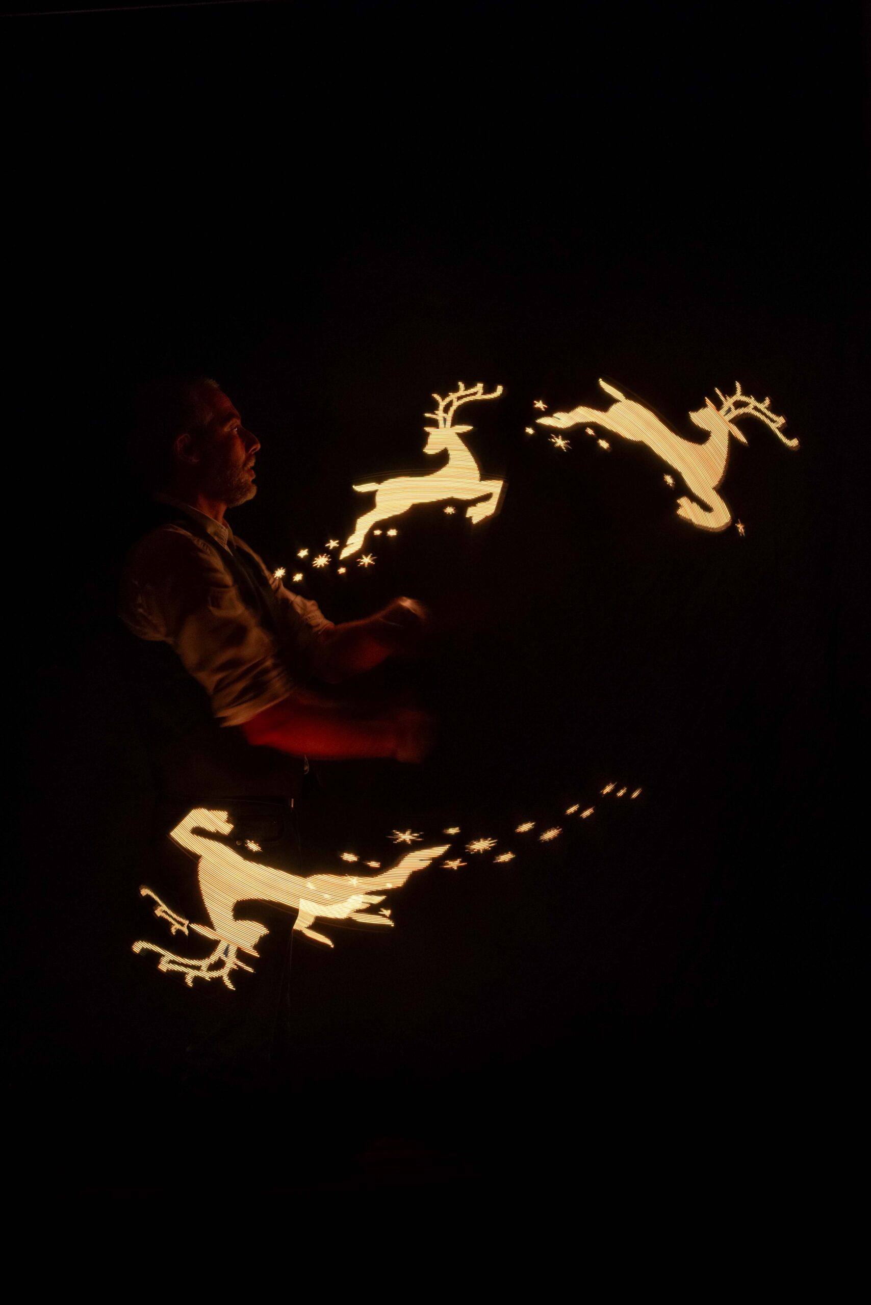 Dank modernster Hightech-Requisiten kann die Show für Ihren jeweiligen Anlass hin angepasst werden. Bei Hochzeiten können beispielsweise Ihre Namen, ihr Hochzeitdatum, ja selbst ein Porträtfoto von Ihnen als Brautpaar als Lichtbild in der Show erscheinen. Firmen freuen sich über die Möglichkeit, Ihr Logo oder Ihre Botschaft auf visuell nachhaltige Weise Ihrem Publikum zu präsentieren. Auch ein „Danke“ an die Mitarbeiter kann so in einem ungewöhnlichen Rahmen formuliert werden.